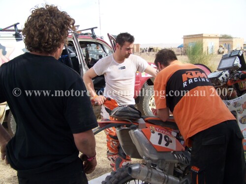 This photo was taken at 9.30am. All the other riders were in by 5pm the previous day. Enio spent the night in the desert.