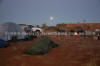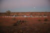 The moon going down as the riders are getting up.